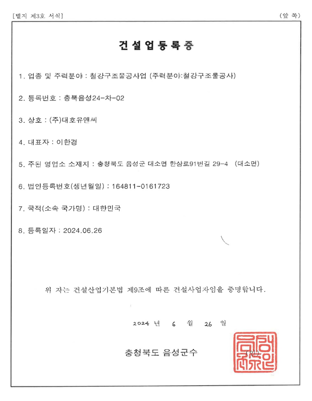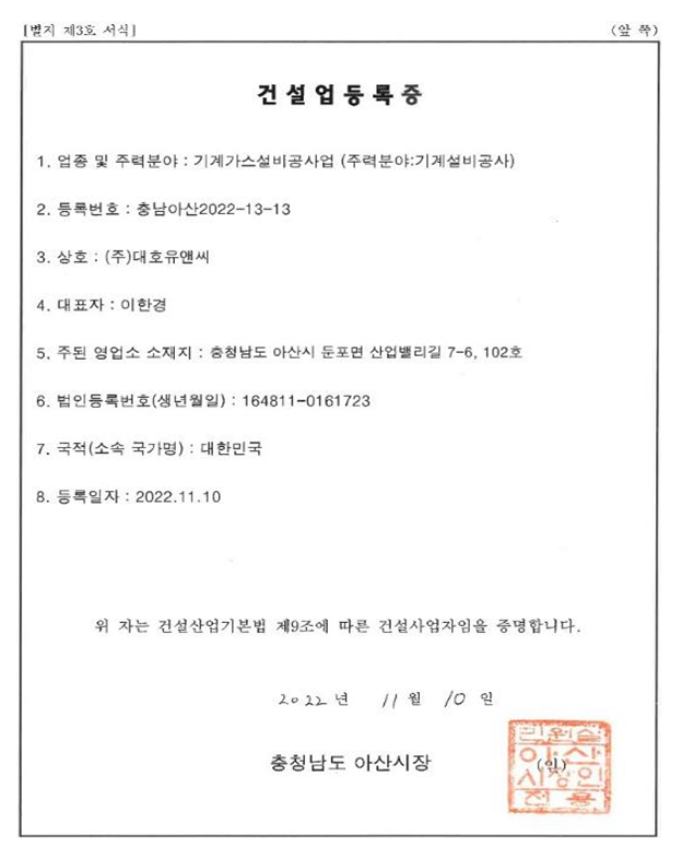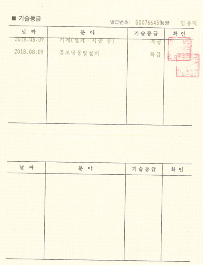 | 건설기술인 | 박호종 | 총괄 | 사장 | 일반기계기사 | 기계 중급 | 2022-10-10 |